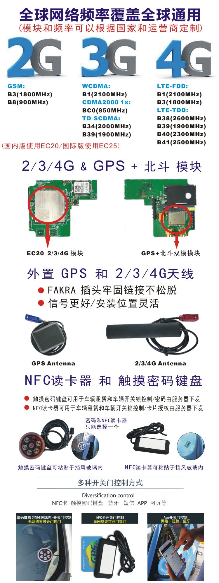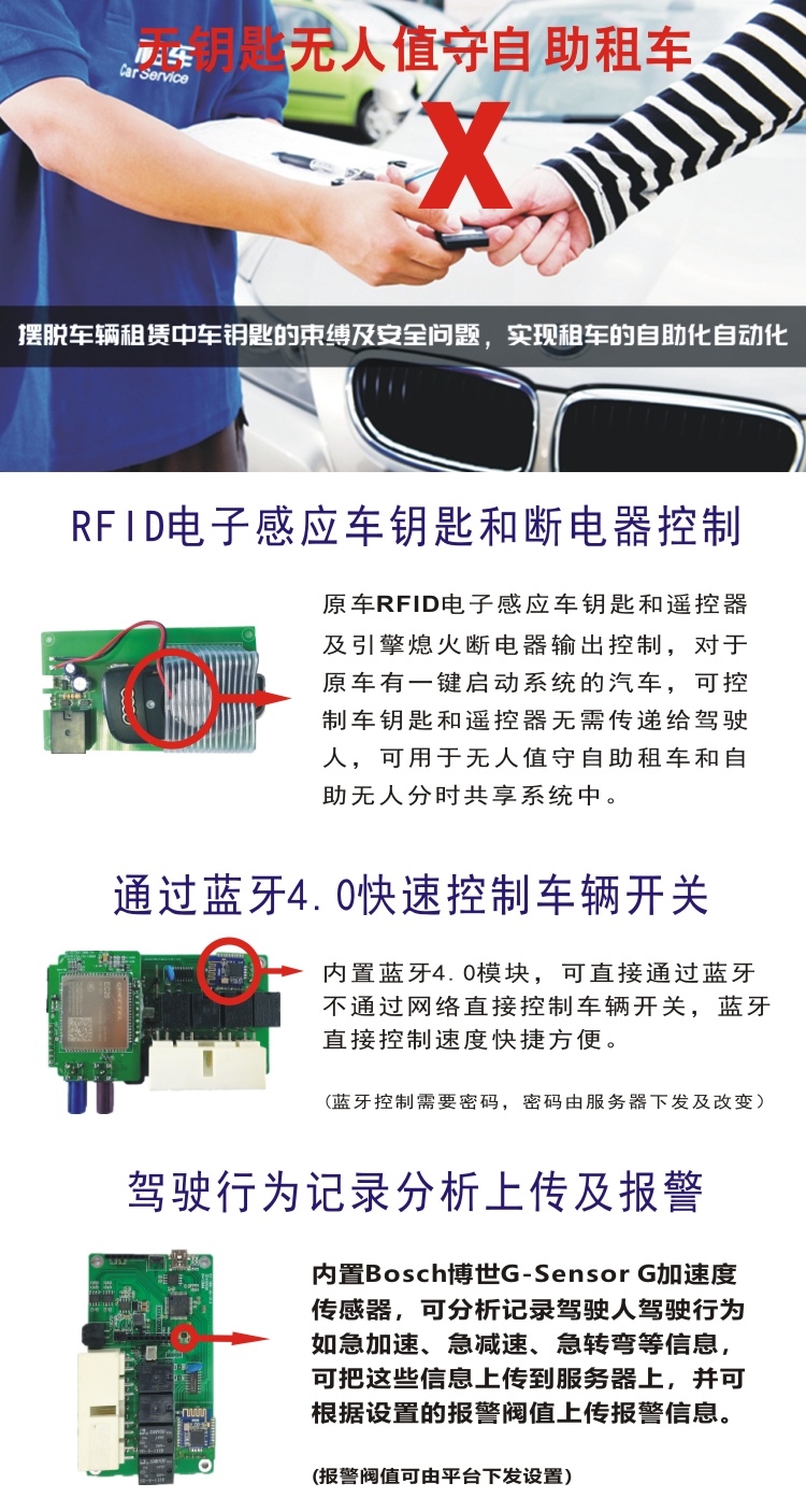 - 可用于个人车辆控制及分时租赁共享汽车控制